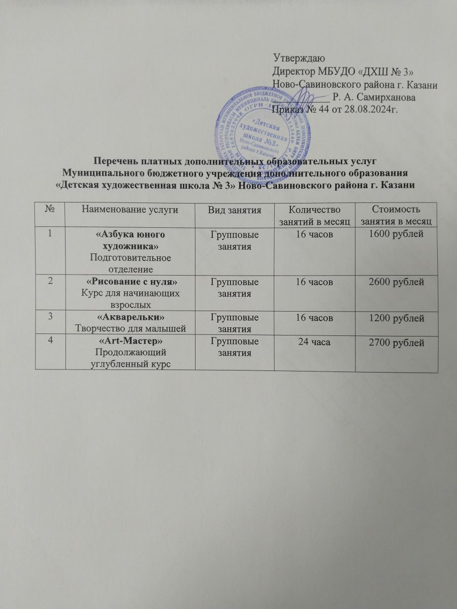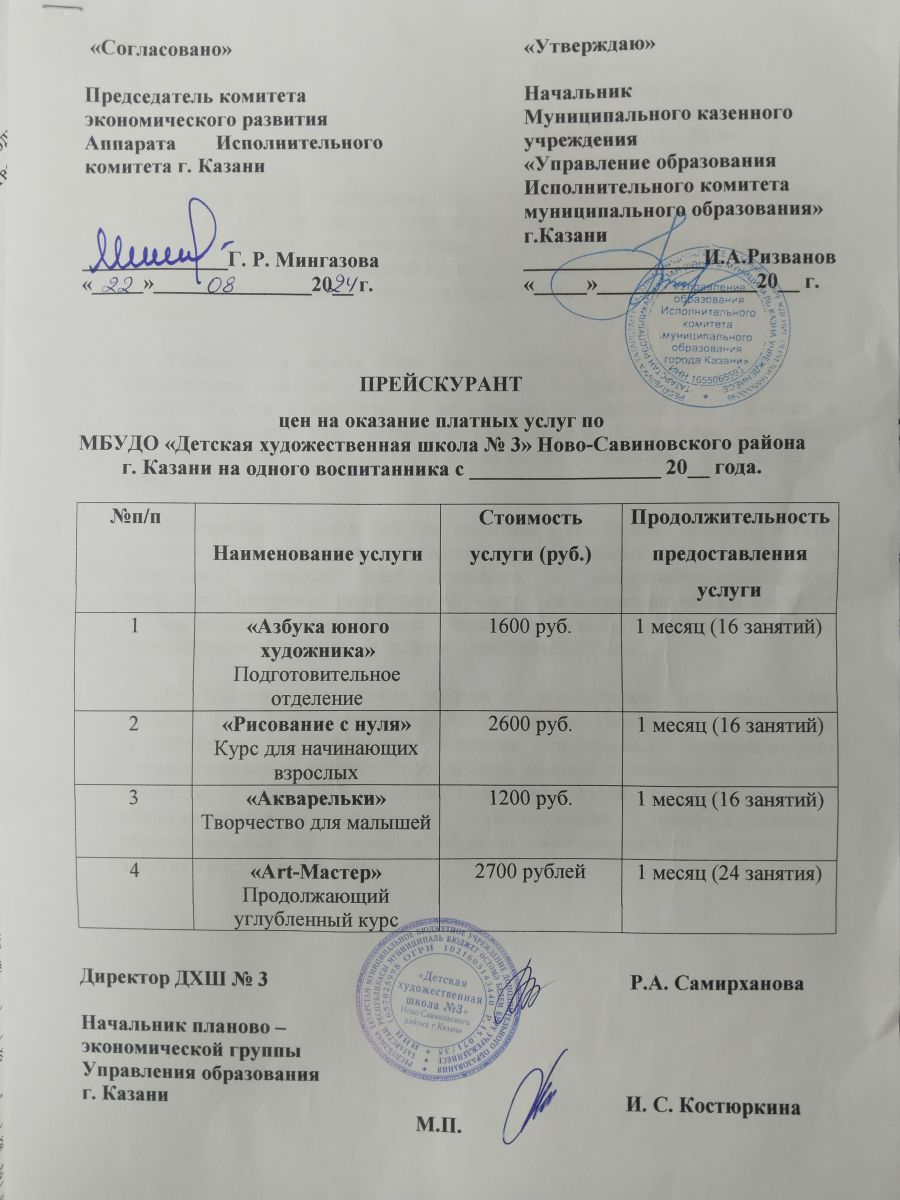 Прейскурант цен на оказание платных дополнительных образовательных услуг