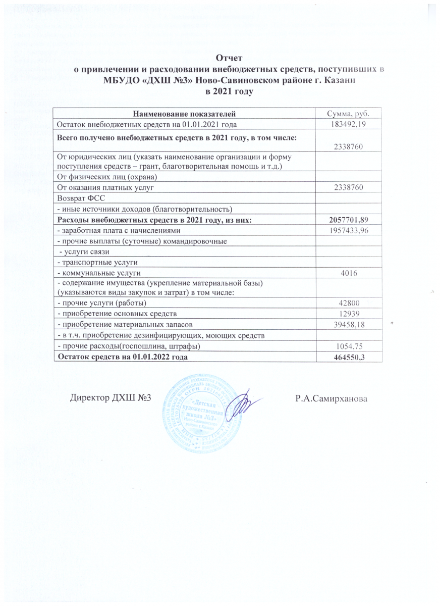 Отчет о привлечении и расходовании внебюджетных средств за 2021г