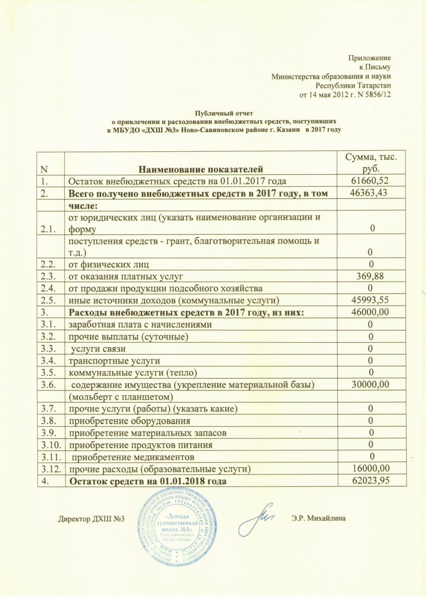 Отчет о привлечении и расходовании внебюджетных средств за 2017г