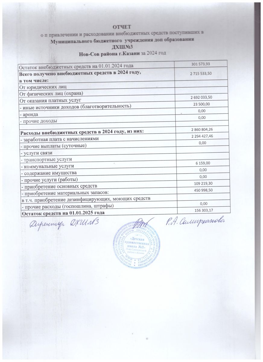 Отчет о привлечении и расходовании внебюджетных средств за 2024г