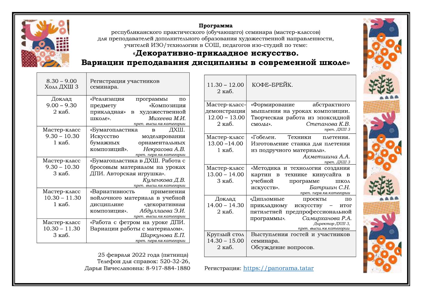 Республиканский практический (обучающий) семинар для преподавателей дополнительного образования художественной направленности, учителей ИЗО/технологии в СОШ, педагогов изо-студий по теме: «Декоративно-прикладное искусство. Вариации преподавания дисциплины в современной школе»