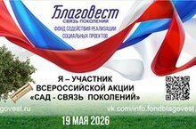 Фондом содействия реализации социальных проектов «БЛАГОВЕСТ» 19 мая 2026 г. реализуется ежегодная Всероссийская акция «Сад - Связь поколений», в рамках Всероссийского духовно-патриотического, социальноэкологического проекта «СВЯЗЬ ПОКОЛЕНИЙ»
