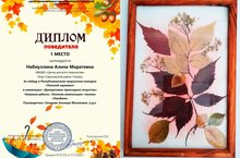 Набиуллину Алину, учащуюся объединения "Салават купере", педагога Сапаровой Э.М., с местом в номинации "Осенняя композиция";Емельянову Дарью, учащуюся объединения "Акварельки", педагога Зиминой М.А., с местом в номинации "Творческая мастерская";