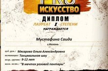 Поздравляем Мустафину Саиду и Студию танца "Султана" группа Юниоры с победой во II Грантовом Международном конкурсе искусств "PRO Искусство".