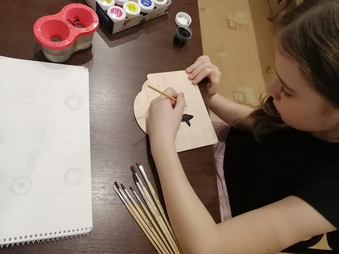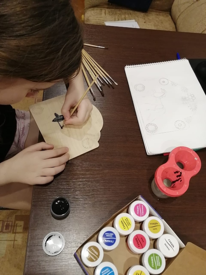 На объединении прикладного отдела «Радуга творчества» под руководством педагога — Машуковой Натальи Геннадьевны учащиеся продолжают осваивать тему «Орнамент. Мезенская роспись». На этот раз они уже от простых форм перешли к сложным. Мезенская роспись - это одна из наиболее древних русских художественных промыслов. Ею народные художники украшали большинство предметов быта, принося в жизнь радость и красоту.