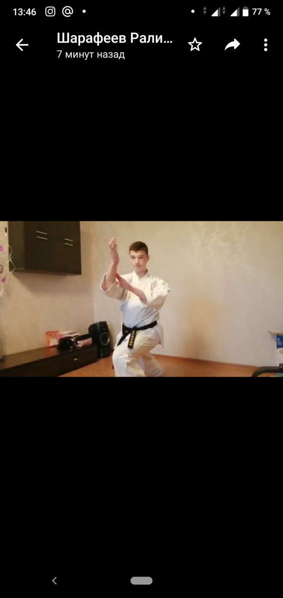 Шарафеев Марат Ралифович руководитель объединения "Карате" провел занятие на платформе Zoom по теме: Совершенствование ката.
