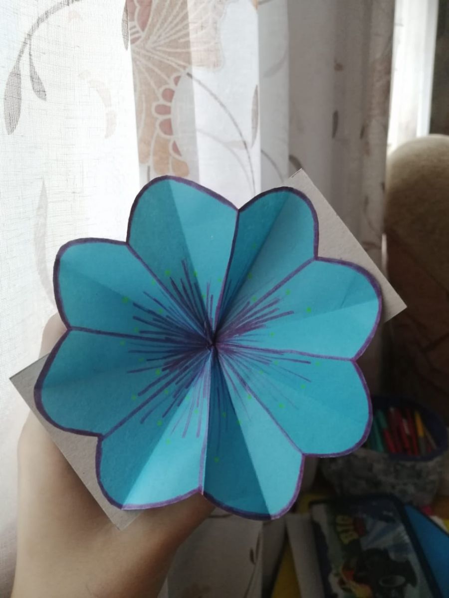 Очень активно учащиеся объединения прикладного отдела «Очумелые ручки» педагога — Шагвалеевой Эвелины Фанисованы участвовали на занятии по теме «Открытка. Раскрывающийся цветок» и прислали много выполненных чудесных работ. У всех получилась настоящая 3D открытка с с раскрывающимся по центру цветком.