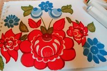 Учащиеся объединения «Радуга творчества» прикладного отдела очень скучают по занятиям в классе и активно участвуют в дистанционных, рисуя орнаменты и осваивая гжель, городецкую роспись.