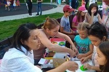 Жители двора послушали концертную программу, спели в караоке и, конечно же, забрали на память о веселом празднике поделки, сделанные своими руками.