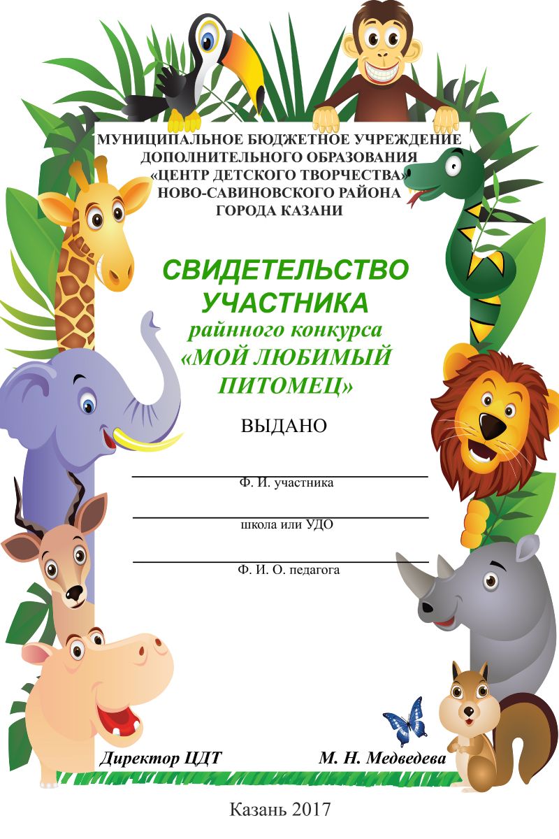Все остальные участники конкурса получают Свидетельство участника от Центра детского творчества. Свидетельства школы заполняют и распечатывают самостоятельно (форма Свидетельства прилагается). В ЦДТ поставить печать и подпись директора..