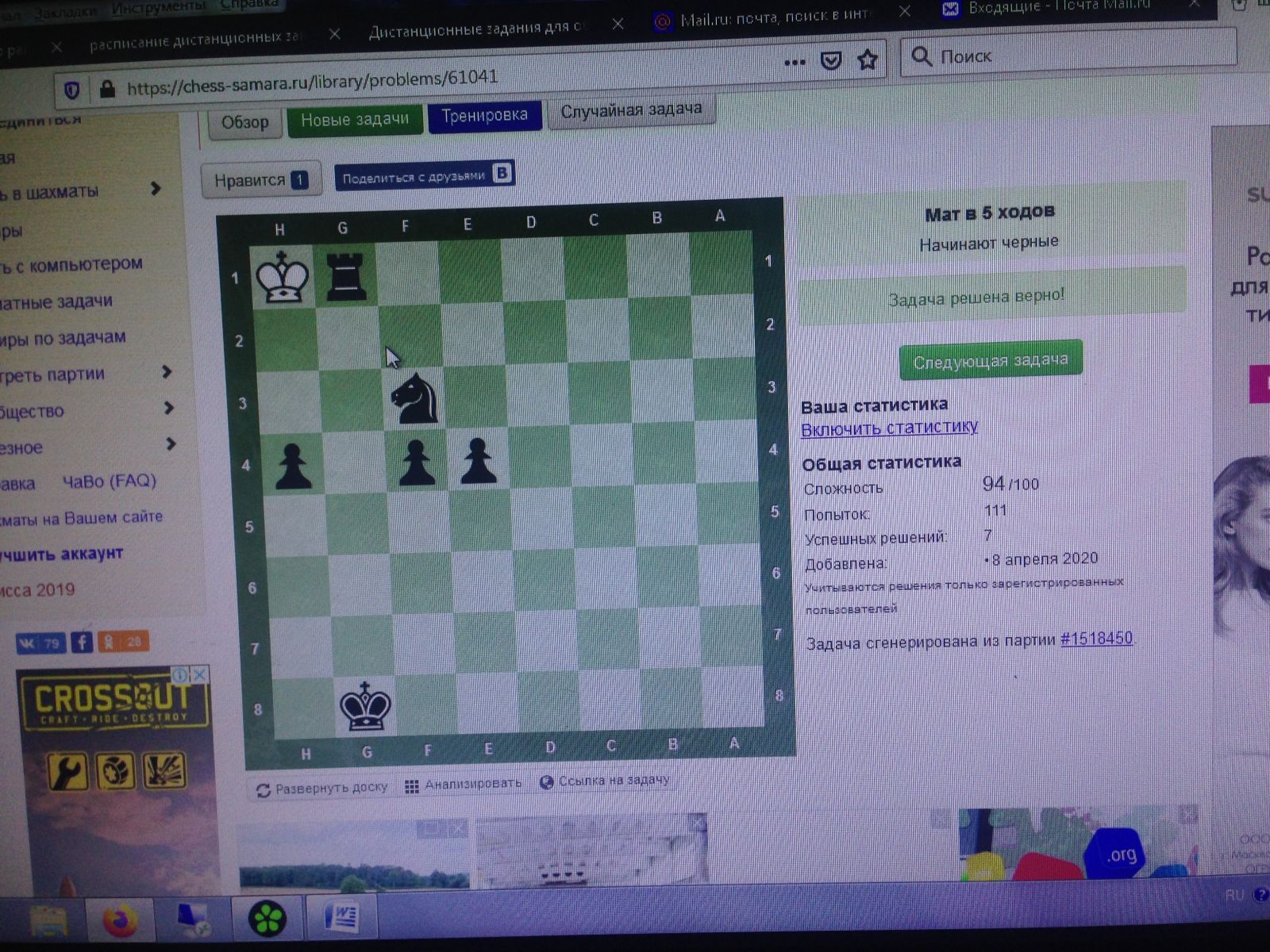 Дистанционные занятия в объединении "Шахматы"
