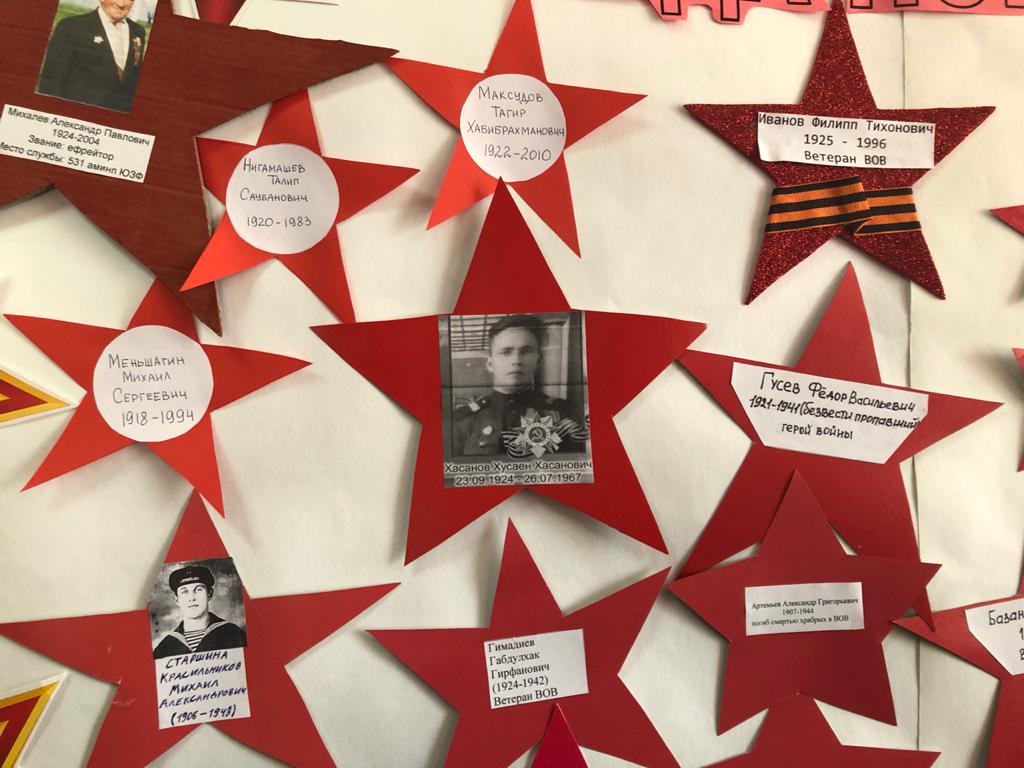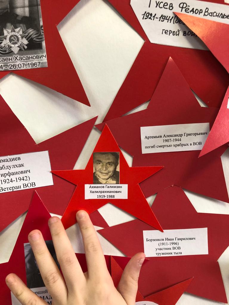 Опубликовано: 02.05.2021Дети объединения «Мастерская чудес» педагога Мирзакуловой Ф.К. почтили память своих воевавших родственников и изготовили стенгазету — звёзды Победы!