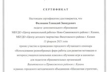 С 15 по 18 февраля 2021 года педагог дополнительного образования Филюшин Геннадий Зиннурович провёл мастер-классы на городском обучающем семинаре "Использование разнообразных форм работы для развития мотивации и интереса учащихся начальных классов к обучению игре в шахматы".