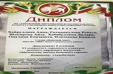 Команда «Вместе» учащихся объединения «Активисты школьного музея» награждены Грамотой за 3 место, за активную работу по изучению истории родного края и развитие краеведения в Республики Татарстан в рамках поведения конкурса юных краеведов.