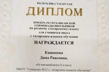 Обучающиеся объединения "Юный лингвст" (педагог дополнительного образования Садриева Х.Г.) Сабитова Миляуша и Кашапова Дина награждены дипломами призеров Республиканской олимпиады школьников по родному (татарскому) языку. Поздравляем!!!