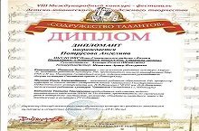 29-30 октября 2016 г. учащиеся педагога дополнительного образования Шавалиевой Э.Х. и концертмейстера Шавалиева А.И. приняли участие в VIII Международном вокально-хореографическом фестивале-конкурсе "Содружество талантов" и получили дипломы (Алексеева Елизавета и Потрусова Ангелина).