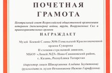 Поздравляем Овчинникову Нажию Гарафуевну - заведующую краеведческим отделом, руководителя Музей Боевой Славы 96 Гомельской Краснознаменной ордена Суворова II степени стрелковой дивизии (МБОУ «Лицей № 23») c победой во Всероссийском смотре-конкурсе школьных музеев общеобразовательных учреждений, посвященном 75-й годовщине Победы в Великой Отечественной войне. По итогам конкурса музей занесен в Книгу почета Всероссийской организации ветеранов, а его руководитель, Нажия Гарафуевна, награждена почетной грамотой. Поздравляем Нажию Гарафуевну и желаем дальнейших успехов!