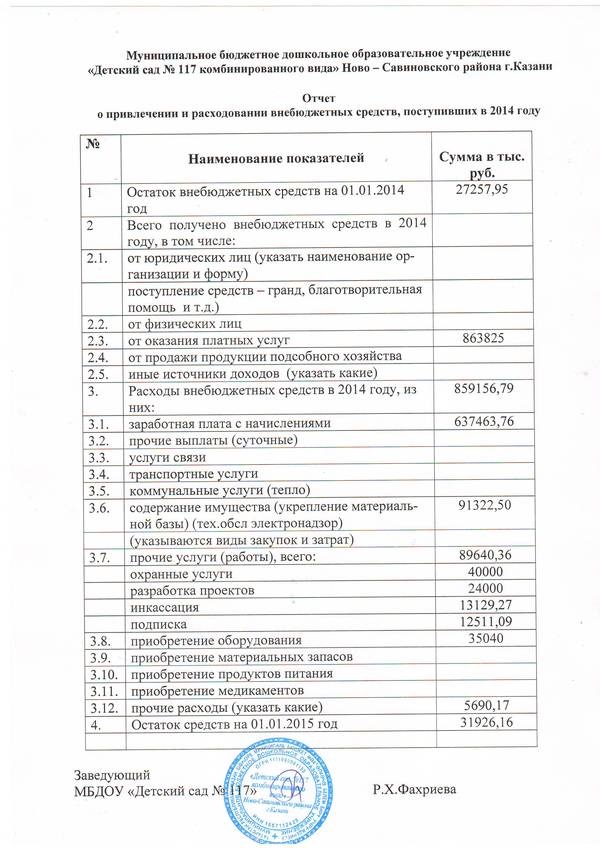 Отчет о привлечении и расходовании внебюджетных средств, поступивших в 2014 году