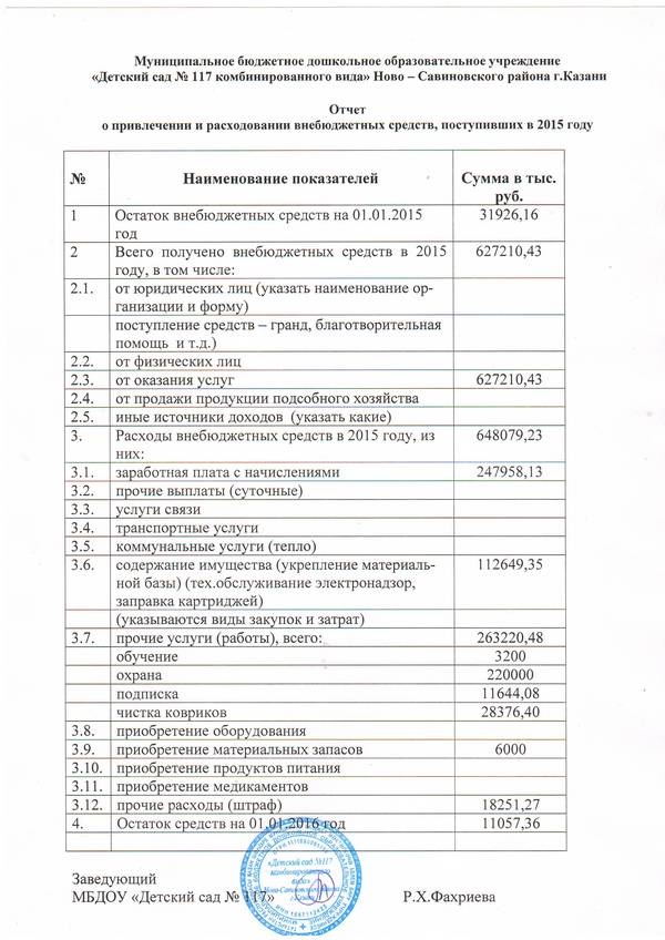 Отчет о привлечении и расходовании внебюджетных средств, поступивших в 2015 году