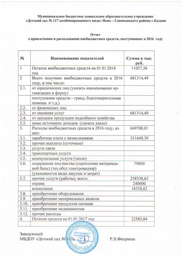 Отчет о привлечении и расходовании внебюджетных средств, поступивших в 2016 году
