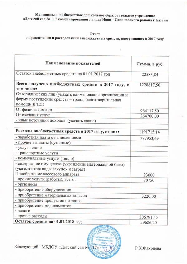 Отчет о привлечении и расходовании внебюджетных средств, поступивших в 2017 году