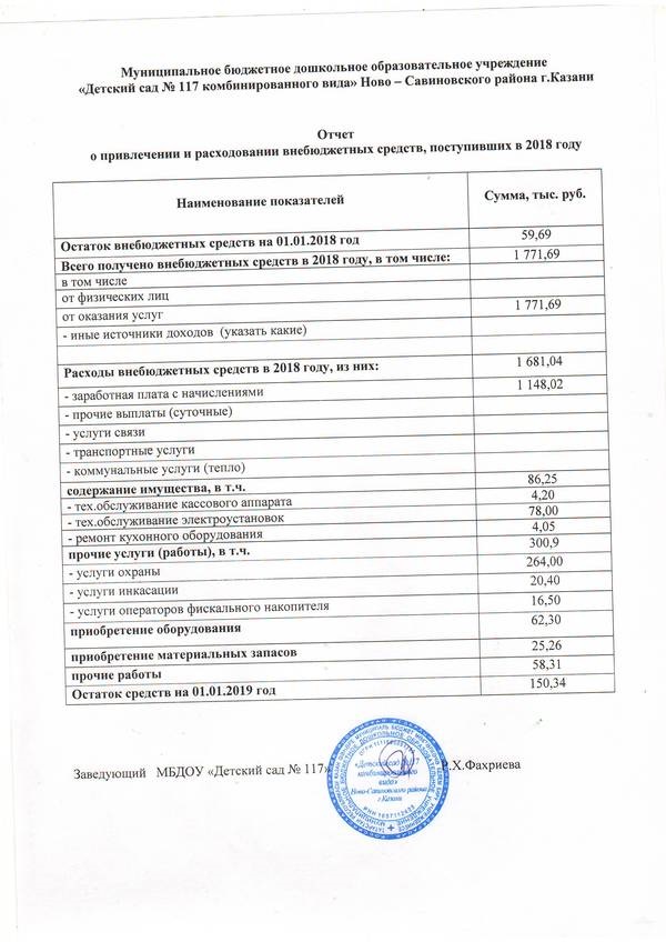 Отчет о привлечении и расходовании внебюджетных средств, поступивших в 2018 году