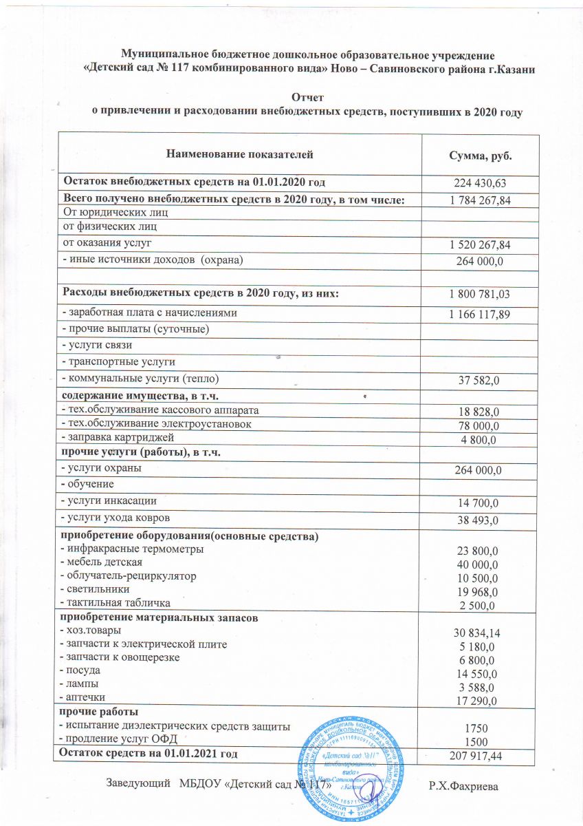 Отчет о привлечении и расходовании внебюджетных средств, поступивших в 2020 году