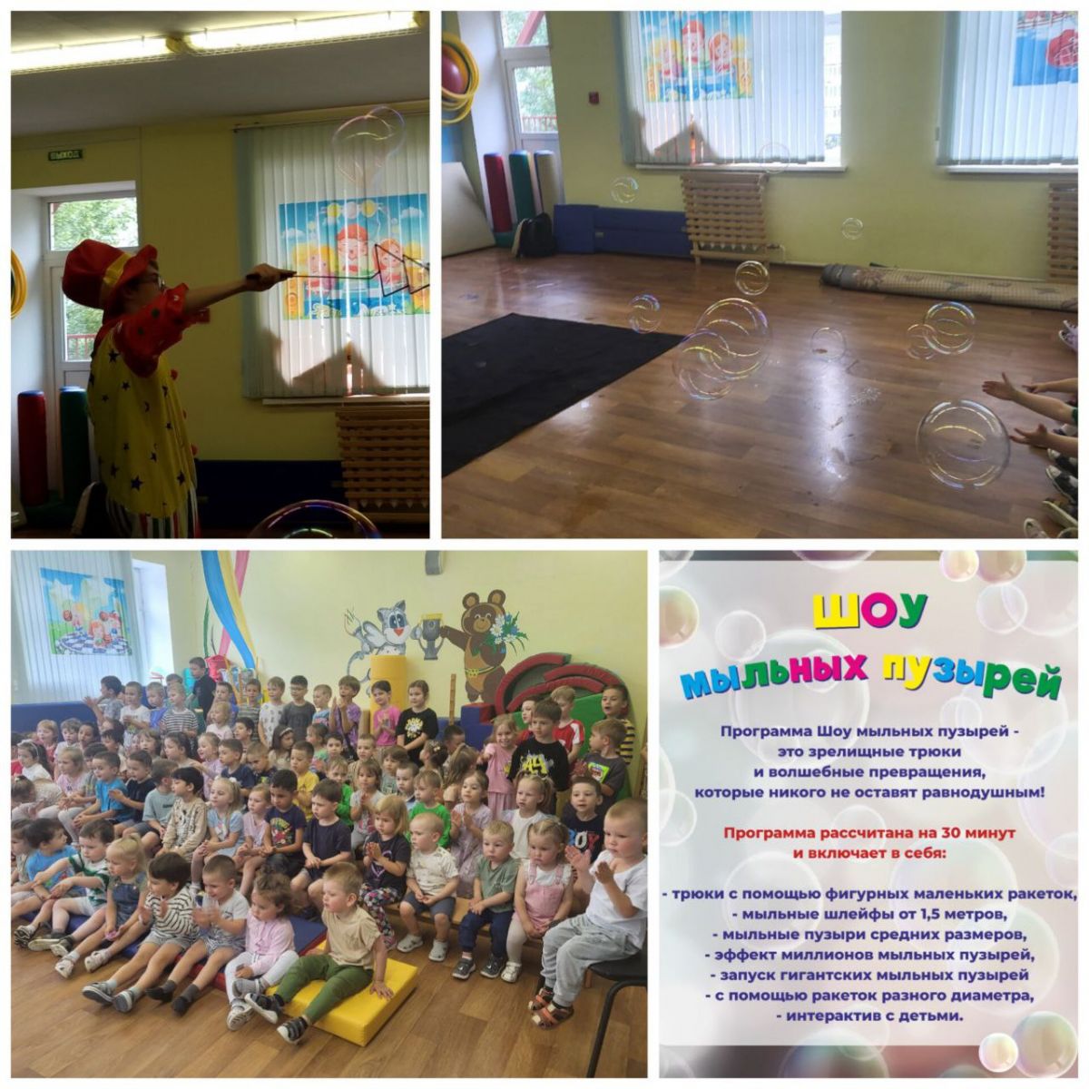 Сегодня в нашем детском саду прошло настоящее волшебство — шоу мыльных пузырей! Малыши окунулись в атмосферу радости и веселья, наблюдая за яркими переливающимися пузырями разных форм и размеров.
