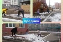 Сегодня прошёл "Средник" по очистке территории детского сада от снега, в котором принимали участие как сотрудники учреждения, так и родители детей.