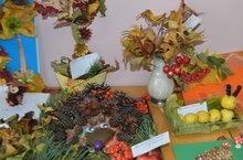 В нашем ДОУ прошла выставка поделок из природного материала. Участниками выставки были родители. Детям, в силу своего возраста, самостоятельно трудно выполнить поделку. Организуя такие выставки, мы преследуемым цель-вовлечение родителей в жизнь детского сада. Многие родители откликнулись на участие в выставке. Материалом для поделок послужили: шишки, листья, рябина, овощи, фрукты, семечки и многое другое. В результате получились оригинальные поделки.