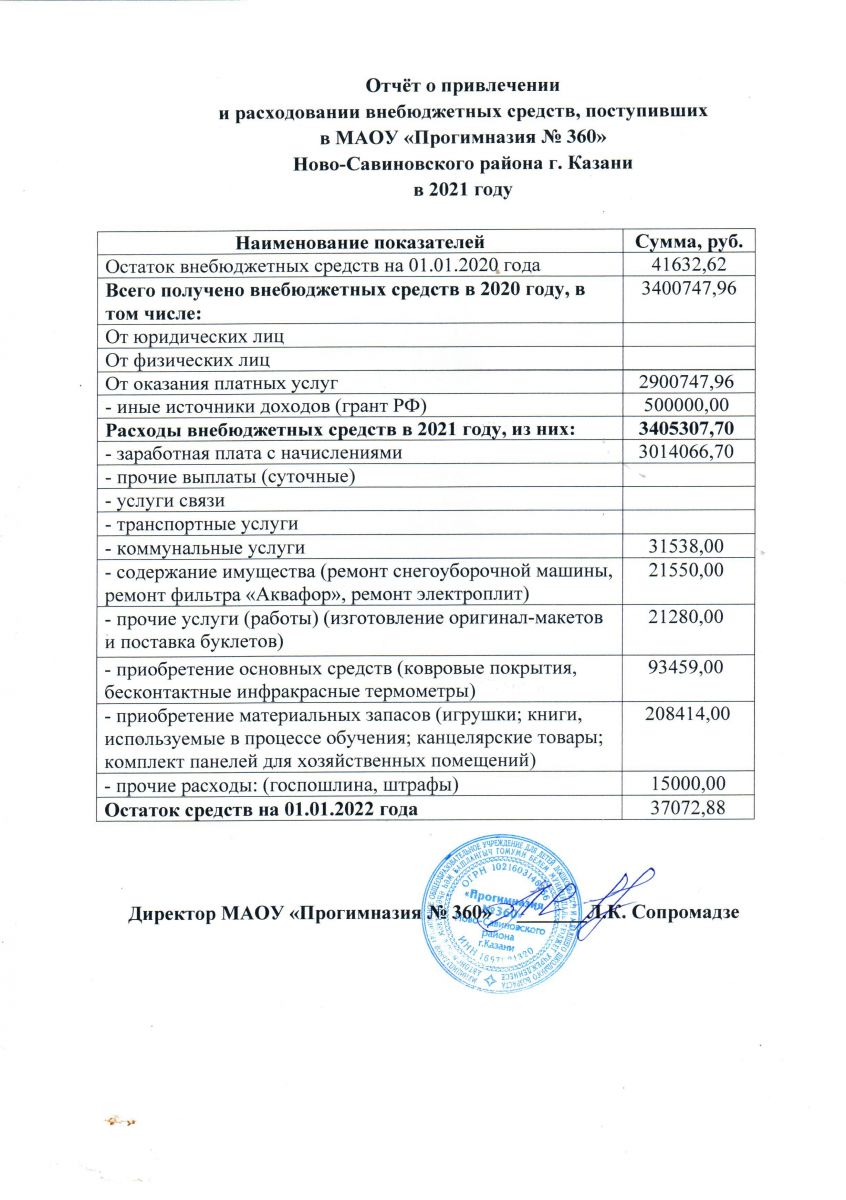Отчет о привлечении и расходовании внебюджетных средств за 2021 год