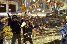 • Ветер качает деревья (в ветряный день выносим на улицу вертушки, играя с ними, дети наглядно представляют, как дует ветер). Ветер срывает листья, которые падают, кружась в воздухе (проводим игру «Мы осенние листочки»).