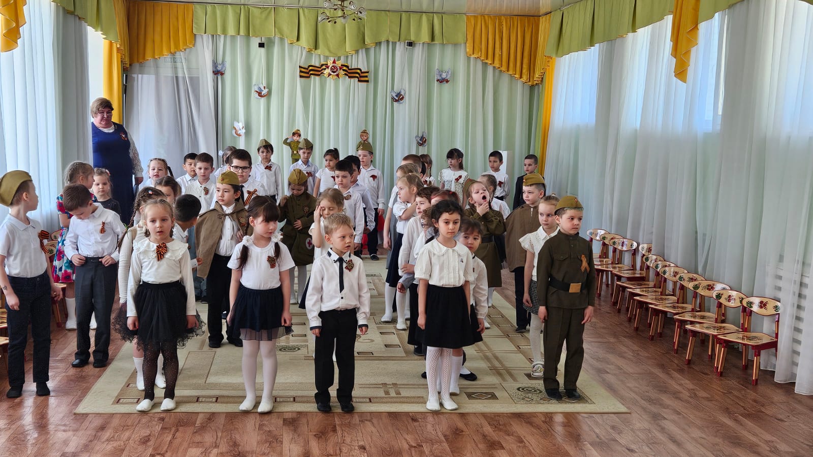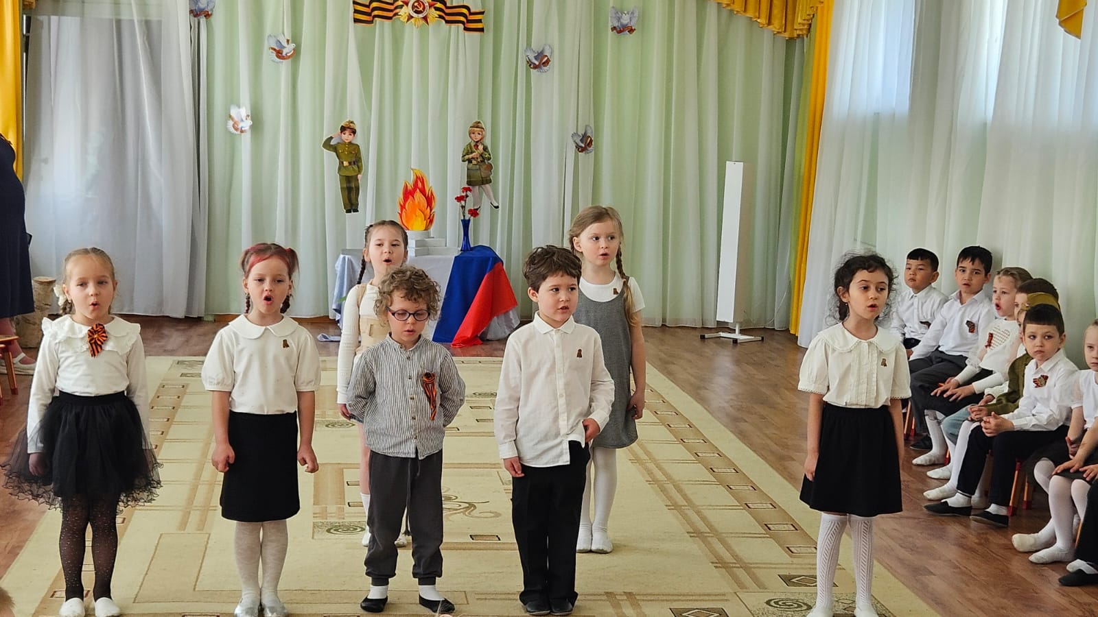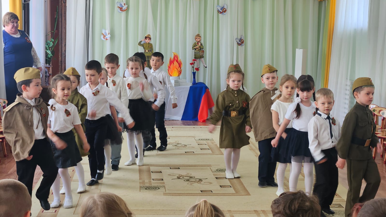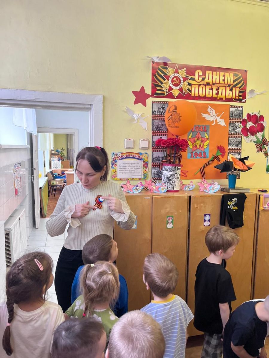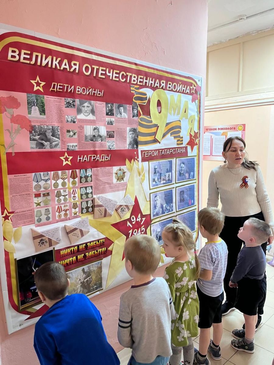 День Победы один из самых почитаемых праздников в нашей стране. 9 мая 1945 года уходит все дальше и дальше от нас, но мы по – прежнему помним, какой ценой досталась эта победа нашему народу, как любили, берегли и защищали ее наши предки, наши отцы и деды. Нельзя, чтобы наши дети забывали об этом. В преддверии Дня Победы, все группы прошли по нашим памятным местам,которые мы подготовили: экспозиция "Вечный огонь", "Бессмертный полк" , стенд памяти "Живет память поколениях", выставка рисунков в честь Дня Победы, рассказ медсестры Юсуповой Наили Абдуловны о подвигах медсестр в военное время. С детьми обсудили историю Великой Отечественной войны, значимость этого праздника для нашей страны. Педагоги рассказали детям о начале войны, о том, как нелегко досталась победа, и о важных моментах нашей истории. Они объяснили, почему мы так чтим этот праздник и почему он вызывает слезы радости. Дети узнали, что война принесла много горя и страданий людям.Мы стремимся воспитать в дошкольниках чувство патриотизма, сопереживания и уважения к ветеранам Великой Отечественной войны. Важно, чтобы дети понимали, что этот праздник — не только радость, но и память о тех, кто отдал свою жизнь за нашу свободу.