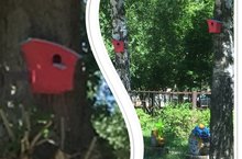 И квадраты и цилиндрыНа деревьях вон висят,В эти новые квартиры-Птицы в гости к нам летят!На березах, липах, кленах-Всюду птичьи голоса!... -