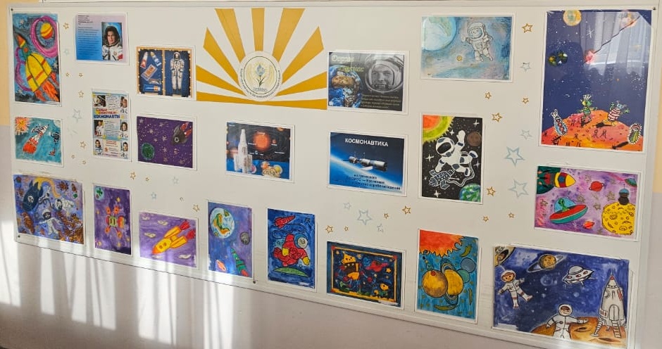 Выставка рисунков ко Дню космонавтики