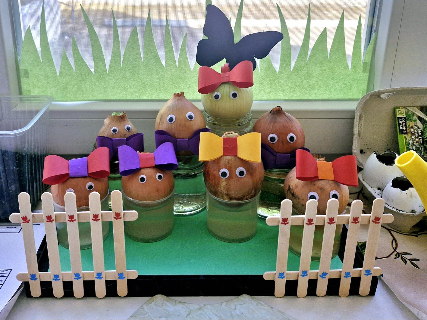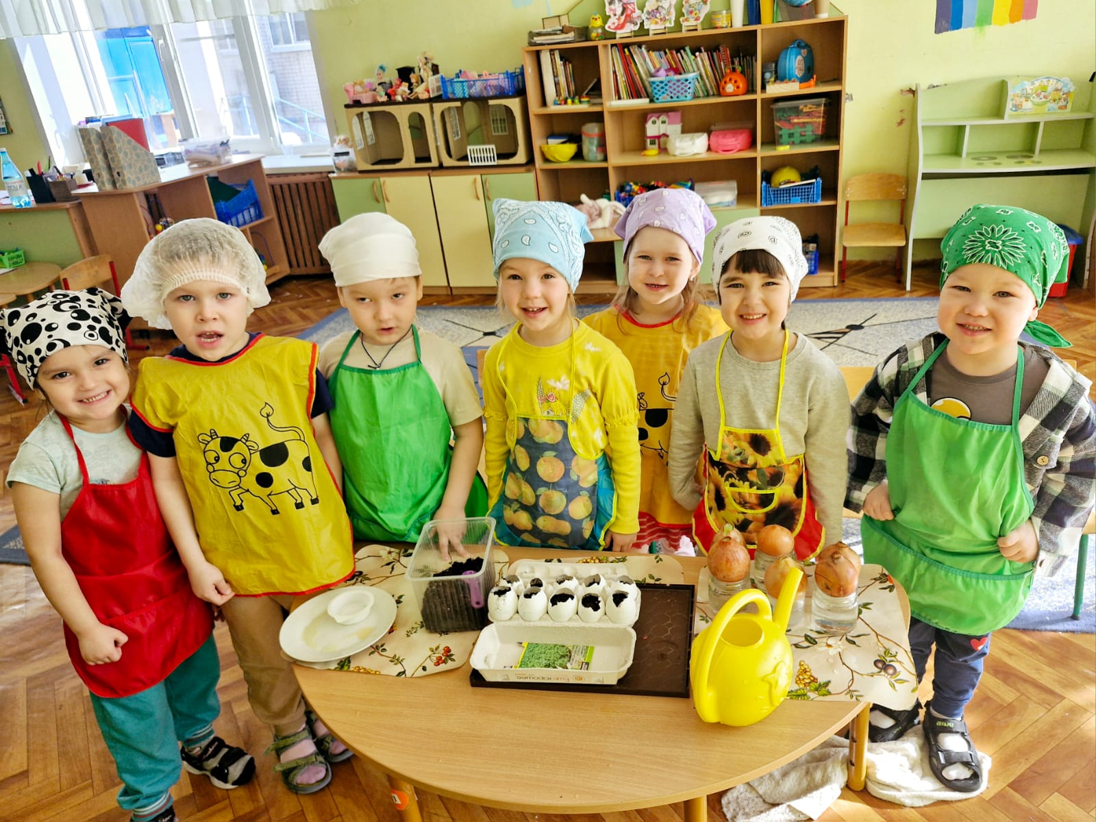 Ребята из группы №6 совместно с воспитателм Чухонцевой Анастасией Александровной подготовились к огородным делам и развели веселый огород прям на подоконнике.