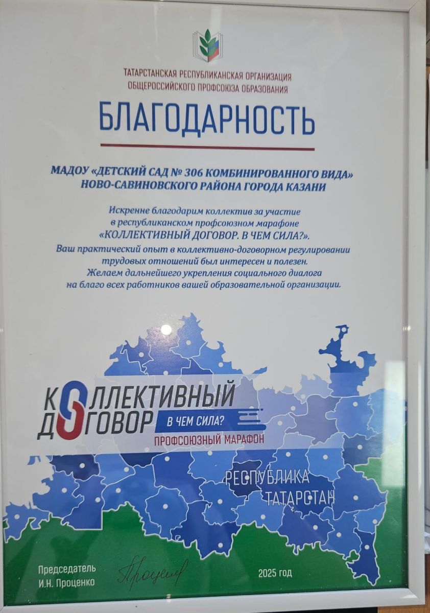 Коллектив детского сада во главе с председателем профкома Тимофеевой Асией Ильиничной приняли участие в марафоне коллективных договоров.
