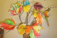 Цель: Продолжать раскрашивать лист, передавая характерную осеннюю окраску. Совершенствовать технические навыки и умения рисования красками. В конструировании учить складывать силуэт осеннего листа гармошкой, действовать по указанию. Воспитывать самостоятельность, умение оценивать свою работу и работу товарищей.