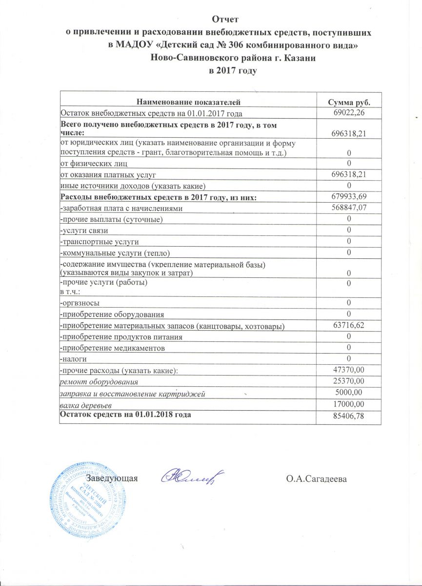 Отчет о привлечении и расходовании внебюджетных средств, поступивших в 2017 году