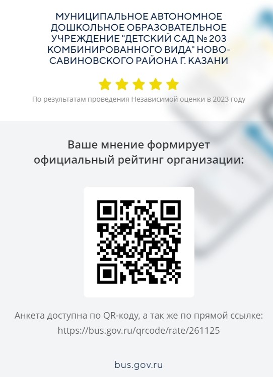 Муниципальное автономное дошкольное образовательное учреждение "Детский сад №203 комбинированного вида" Ново-Савиновского района г. Казани