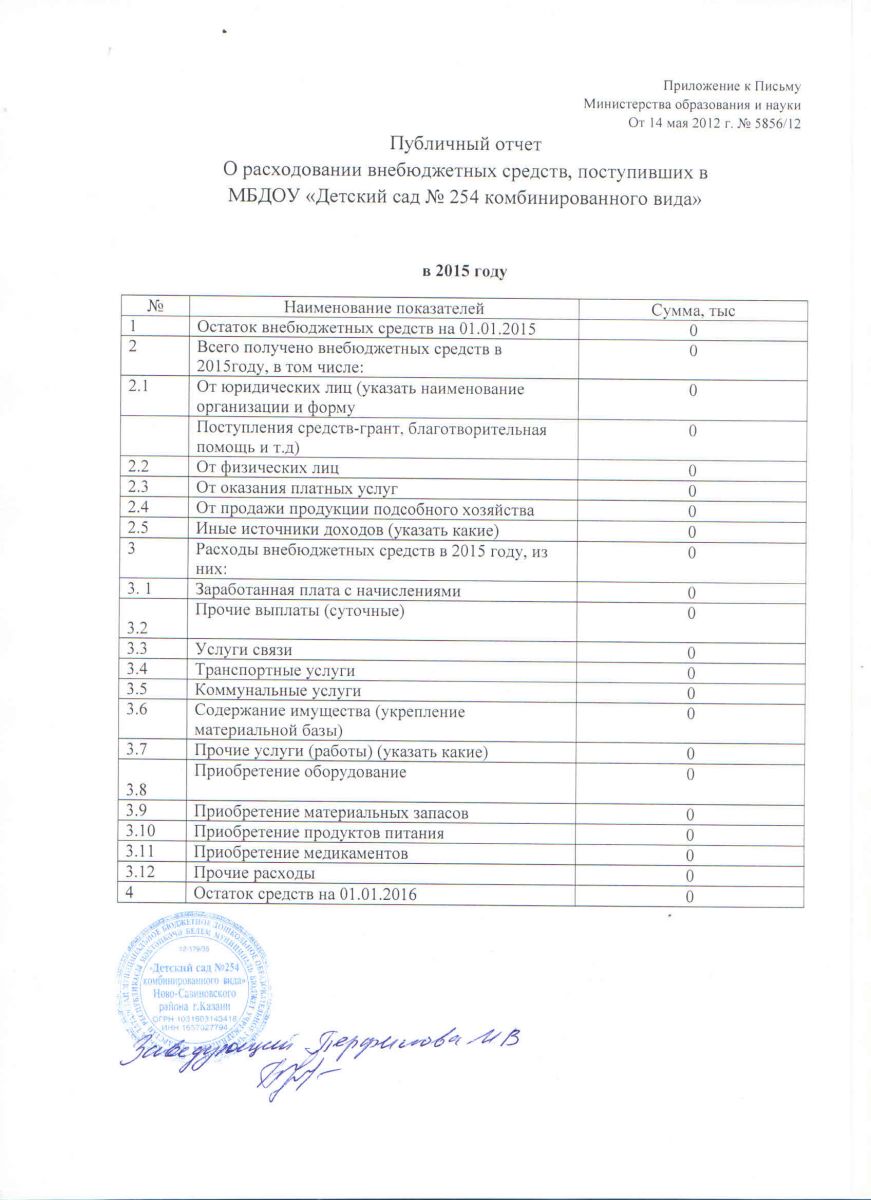Отчет о привлечении и расходовании внебюджетных средств за 2015 год