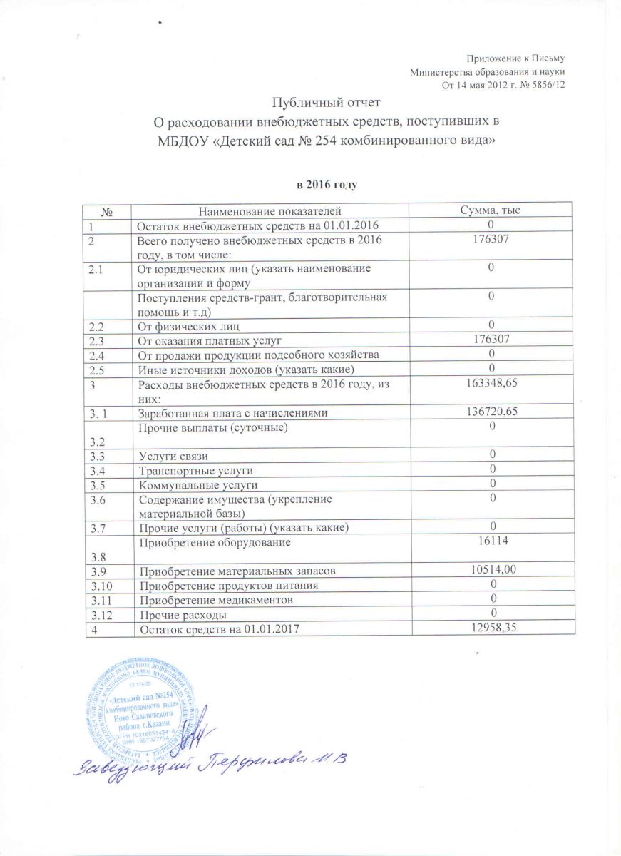 Отчет о привлечении и расходовании внебюджетных средств за 2016 год