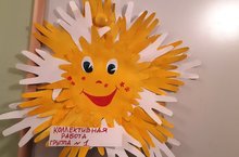 Вместе с воспитателем Эльвирой Радиковной ребята первой младшей группы сделали коллективную работу. Солнце получилось просто замечательное.
