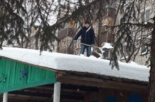 Родители помогают сбрасывать снег с крыш прогулочных веранд.Большое им спасибо. 01.02.2018