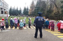 Сотрудник ГИБДД УМВД России по г.Казани Машковцев Ф.А.провел практические занятия на улице для групп №1 и 2 на тему "Правила безопасного поведения на дороге" 25.10.2017