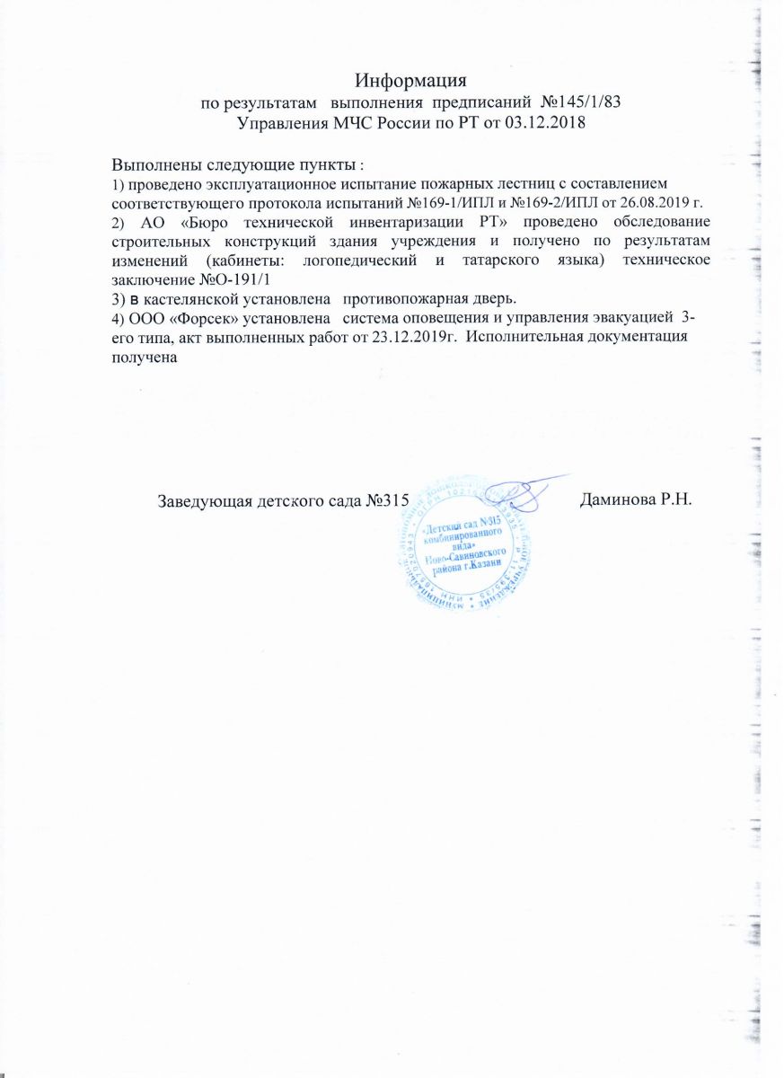 Отчёт о выполнении предписания отдела надзорной деятельности от.03.12.2018