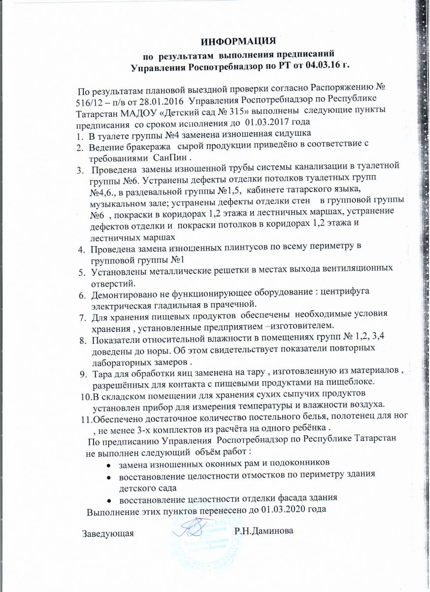 Отчет о выполнении предписания от 04.03.2016