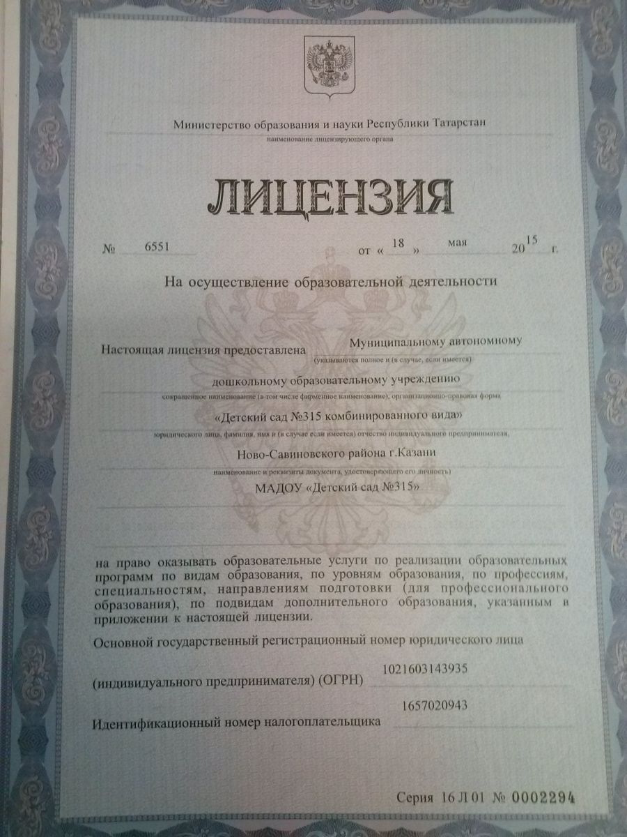 МАДОУ "Детский сад №315 комбинированного вида" Ново-Савиновского района г. Казани (реорганизация)