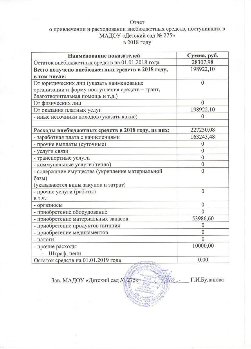 Отчет о привлечении и расходовании внебюджетных средств в 2018 году