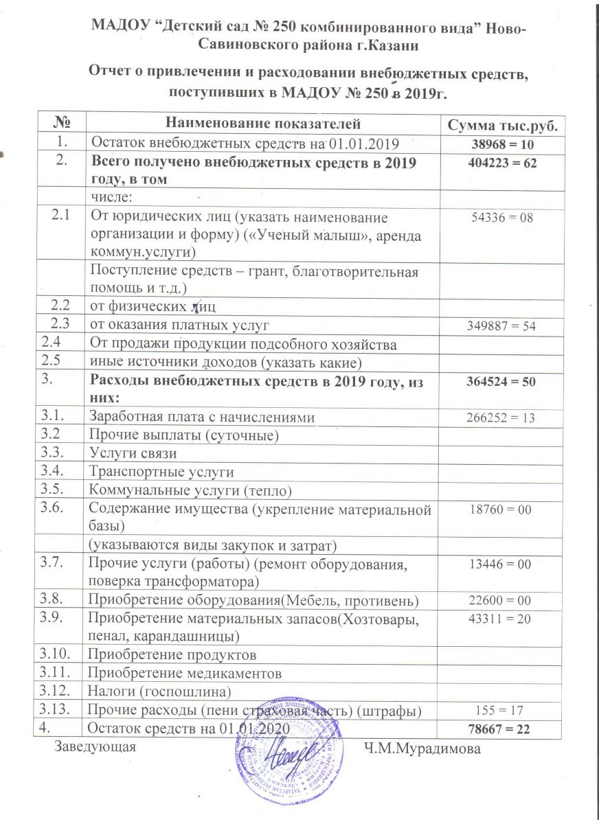 Отчет о привлечении и расходовании внебюджетных средств в 2019 г.